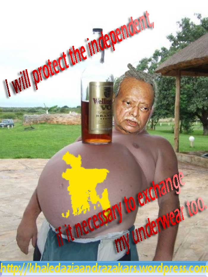 তিনি বঙ্গবন্ধুর পক্ষে ঘোষণা দিয়েছিলেন। সে জন্য বঙ্গবন্ধুর ঘোষণাটি গায়েব করতে হবে কেন? আবার বর্তমান সরকার যেভাবে সবখান থেকে জিয়ার নাম মুছে ফেলার চেষ্টা চালাচ্ছে তাও শুভবুদ্ধির পরিচয় নয়। ইতিহাসে যাঁর যেটুকু স্থান তা দিতে হবে। একাত্তরে জাতি ঐক্যবদ্ধ ছিল। কতিপয় রাজাকার-আলবদর ও শান্তি কমিটির সদস্য বাংলাদেশের স্বাধীনতাকে ঠেকাতে পারেনি। খালেদা জিয়া কিংবা তাঁর দল বিএনপিও যুদ্ধাপরাধীদের বিচার ঠেকাতে পারবে না। যদি গায়ের জোরে বিচার ঠেকাতে চায়, তাহলে জনগণই তাদের ঠেকিয়ে দেবে।