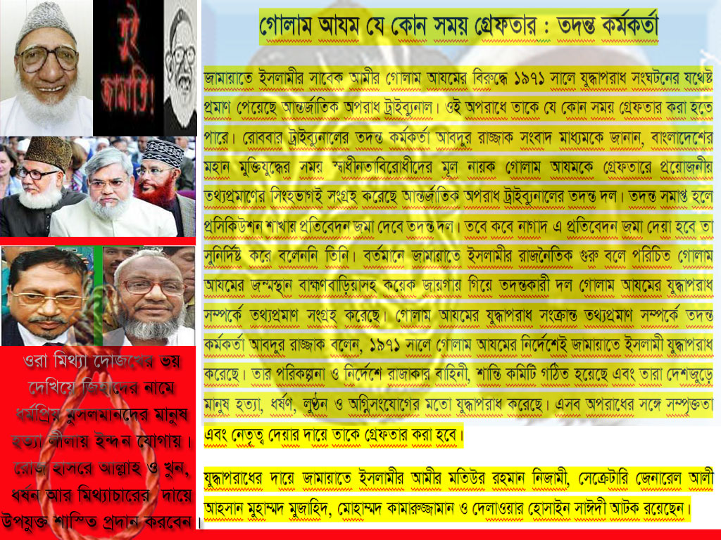 “In our primary investigation, we found that Jamaat chief Motiur Rahman Nizami was the mastermind behind the massacres,” said Md Abdur Razzak of the International Crimes Tribunal probe team.