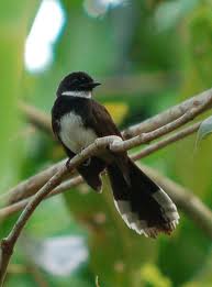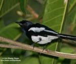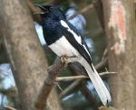 all, and also for being one of the numerous shy bird species. Magpie Robins in Bangladesh are therefore only found in the rural areas where it is quieter and they have the freedom to breed without being disturbed by human interference. They aredistinctive in their coloring, as the males have black heads, backs, wings and tail with white under parts and a little white plumage on their wings. The females look similar to the males, with the difference being that the females are grayer, with grayish-white under parts. They are also distinct in the fact that they keep their tails up in the air, which moves while they sing. Magpie Robins are able to mimic a variety of bird species calls.
