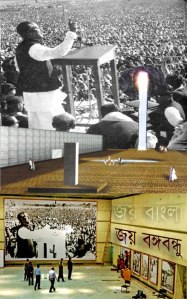 You can agree or disagree with his political philosophy, but even his enemies have no doubt about the patriotism of this man: Sheikh Mujibur Rahman, the founding father of Bangladesh. He spent most of his life fighting against the injustice bestowed upon Bangalees, first by the British, and then by the Pakistani Panjabi military/civil junta. After the mass uprising of 1969, he was given the title “Bangabandhu”, means “Friend of Bengal”. He is largely known as Bangabandhu among the millions of Bangalees.