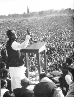 On 7 March, Bangabandhu Sheikh Mujibur Rahman, addressed a mammoth publicrally at the Race Course ground, where he declared: “THE STRUGGLE NOW IS THE STRUGGLE FOR OUR EMANCIPATION, THE STRUGGLE NOW IS THE STRUGGLE FOR OUR INDEPENDENCE. JOI BANGLA .”